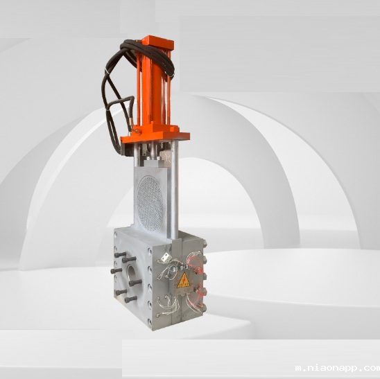 液压换网模头,采用合金钢经锻、铣、磨、钻线切割加工和多级调质、氮化增硬处理,具有度高、材质超硬和的特性,保证在大夹紧力和摩擦滑动条件下的长期可靠运行而不漏料,换网器设计为高效内置芯棒加热,采用高速高压油缸驱动过换网,由大流量的液压站间提供驱动力,具有换网轻松、自动到点的突出优点,能有效地满足安全、快速、省力、和换网不停机的造粒要求,液压换网器结构简洁,维护简单,故障率低,是目前塑料回收界比较受欢迎的一种高级不停机过滤器或换网器。